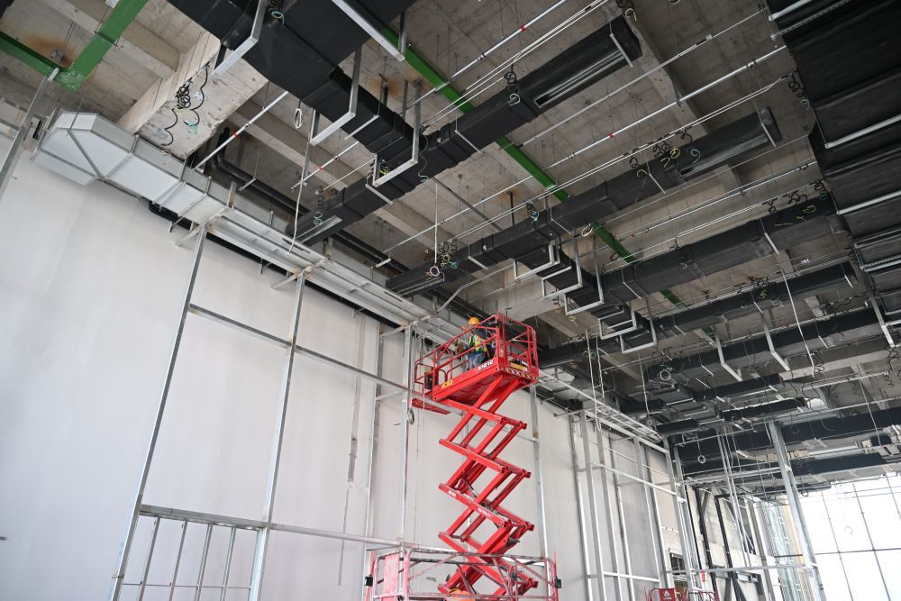 ↑ 3月25日,中建二局工人在北京科技大学雄安校区建设现场施工。