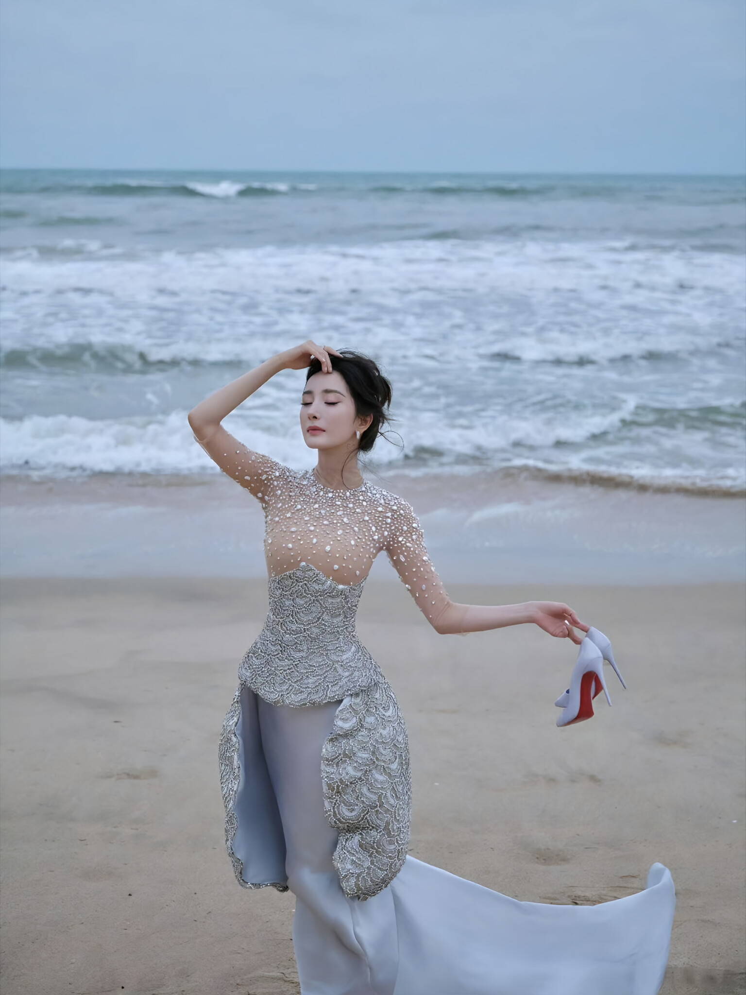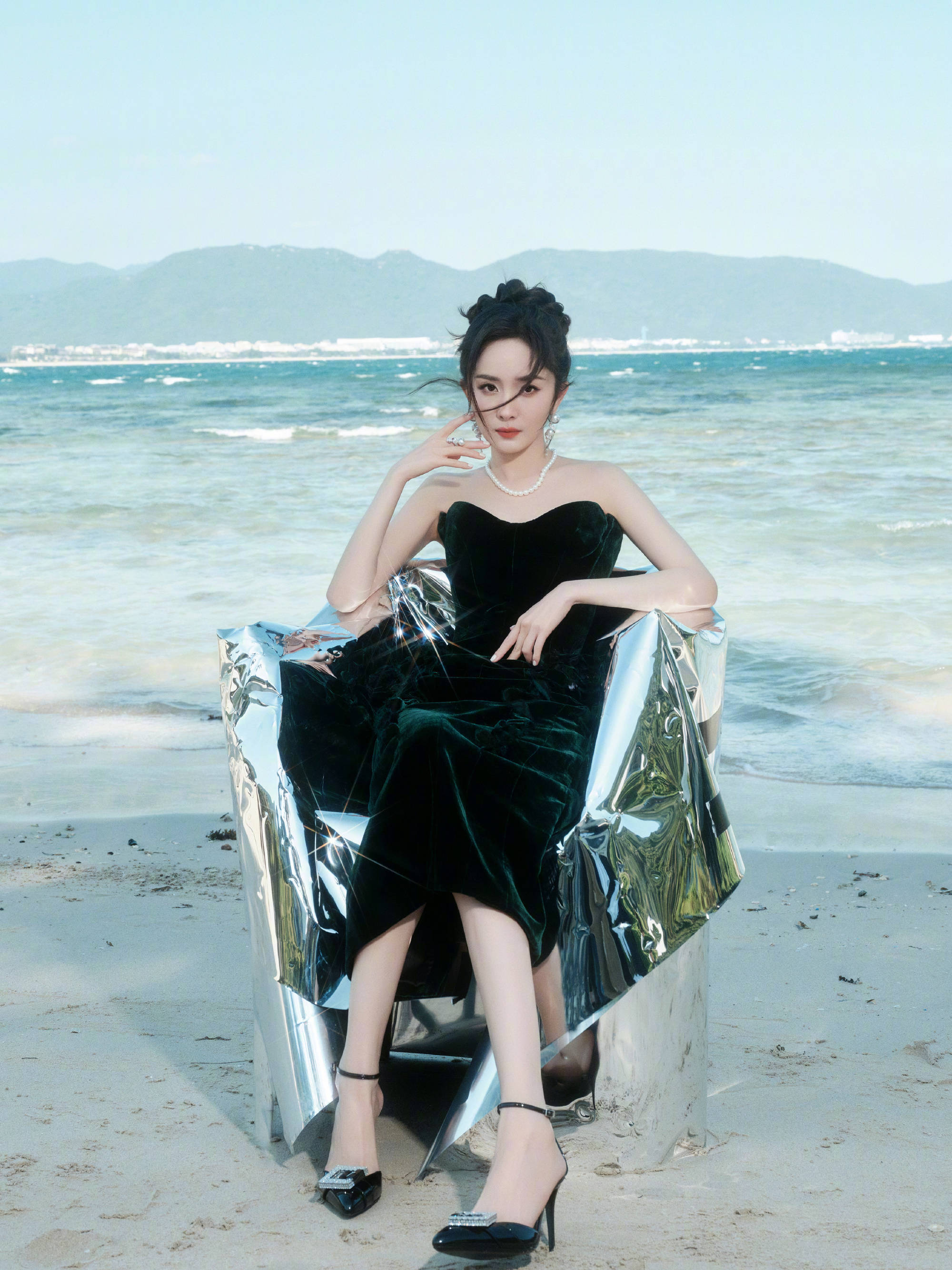 先说说这条“出圈”的珍珠流苏裙。很多人觉得珍珠元素老气,可杨幂偏要反着来——她选的不是那种圆润饱满的大珍珠,而是细小的珍珠串成流苏,随着动作轻轻晃动,既有少女的灵动又不会显得刻意。裙摆长度也很讲究,刚好到大腿中部,露出最纤细的小腿线条,骑单车时裙摆飞扬的瞬间,连风都带着甜美的味道。更聪明的是她搭配了一双小白鞋,中和了珍珠裙的精致感,多了几分随性的元气,这不就是咱们常说的“贵气中带点接地气”吗?